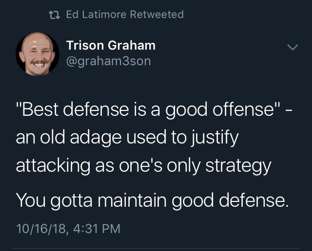 Recently, while perusing Twitter, I happened upon a retweet from the illustrious Ed Latimore regarding Offensive Strategy. Here’s the tweet in question: